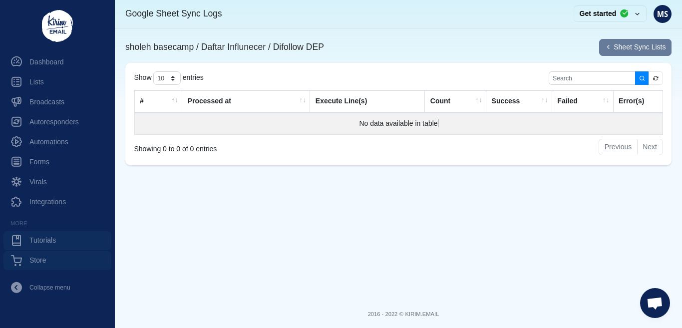 Kemungkinan tidak ada data alamat email dan nama di dalam Google Sheets Anda. Karena untuk integrasi paling tidak butuh data nama dan alamat email.