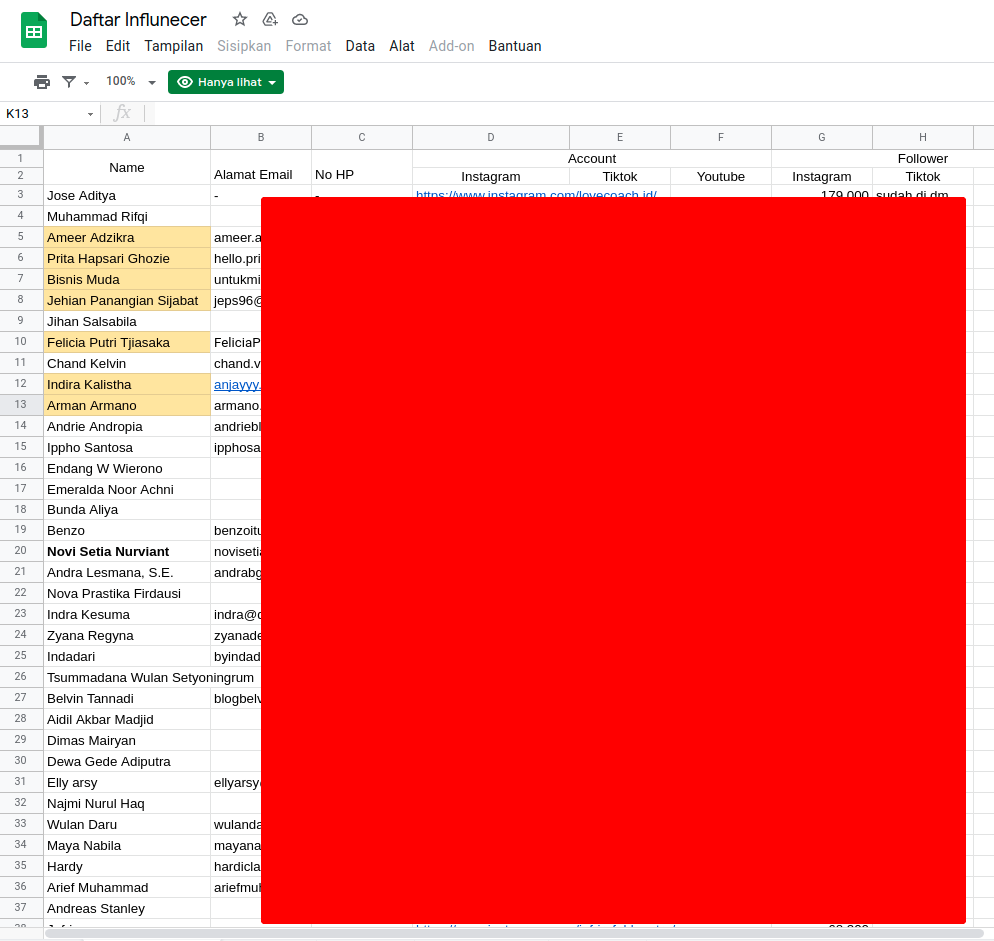 Solusinya adalah pastikan kembali di Google Sheets Anda sudah ada data paling tidak nama dan alamat email.
