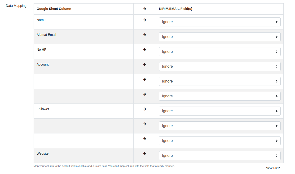 Jika Anda tidak melakukan perubahan pada field data mamping maka yang dipakai adalah opsi default yaitu Ignore.