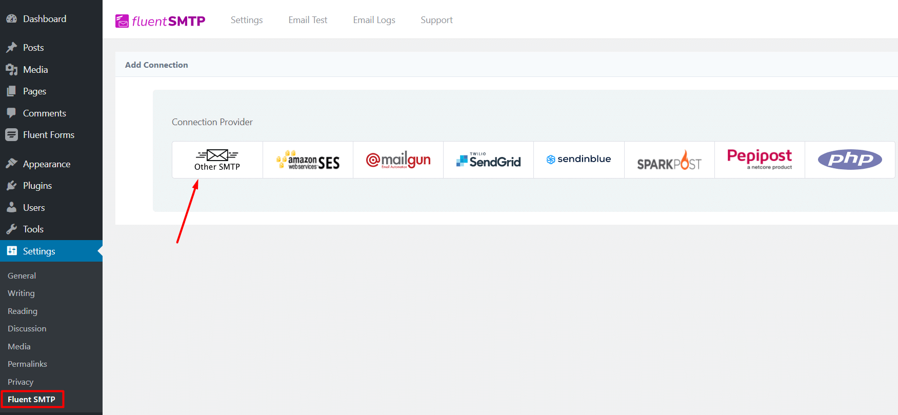 Jika opsi tersebut tidak muncul, langsung pilih Other SMTP.